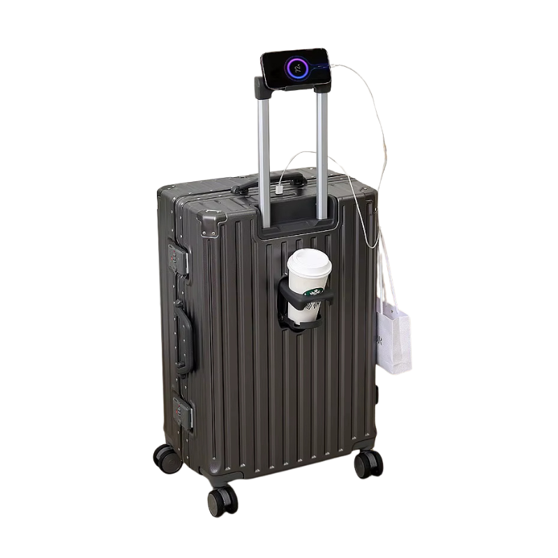 Ceruzzi 22-tums kabinväska är det perfekta valet för dig som vill resa bekvämt utan att kompromissa med design eller funktion. Tillverkad i en slitstark aluminiumlegering med förstärkta hörn och ett inbyggt USB-uttag för laddning på språng. Den inbyggda mugghållaren gör den idealisk för både korta affärsresor och weekendresor.