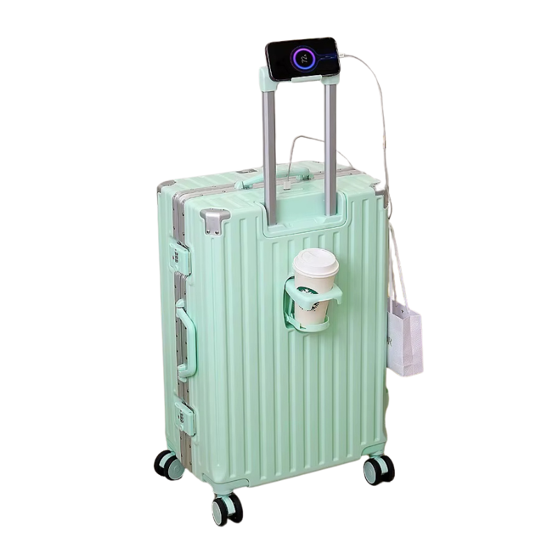 - Funktioner: Inbyggd USB-port, mugghållare, stötdämpande hjul, TSA-lås, uppdelad innerförvaring med antibakteriellt foder
